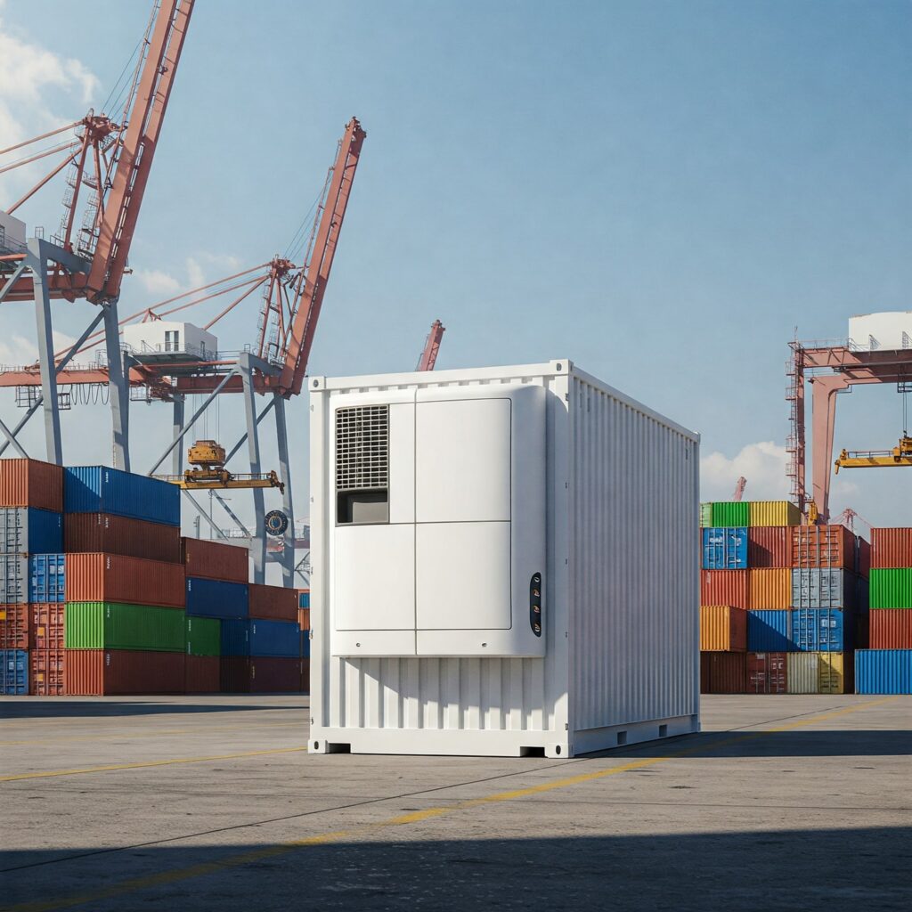 O container refrigerado é equipado com sistemas de controle de temperatura, garantindo que produtos perecíveis cheguem ao destino em perfeitas condições.